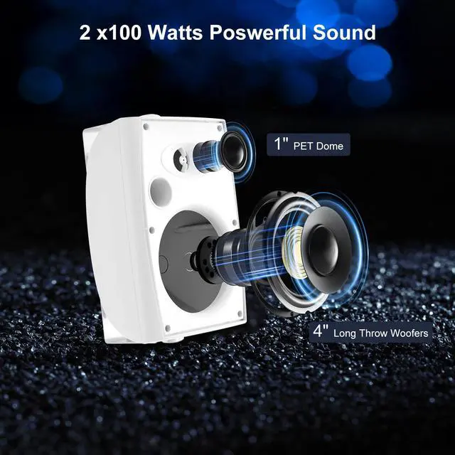 • SUPERIOR SOUND QUALITY Equipped with a 4-inch injection-molded PP cone woofer and a 1-inch PET dome tweeter, these wall mount speakers deliver crisp highs and deep bass, providing an immersive audio experience for both indoor and outdoor settings