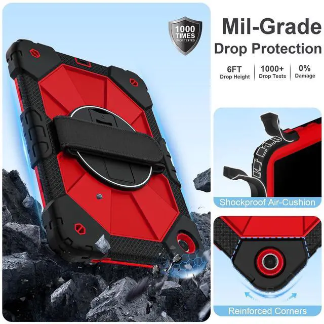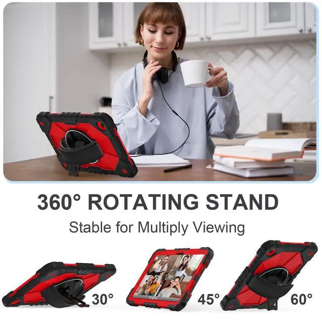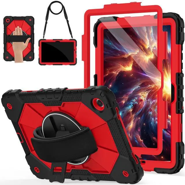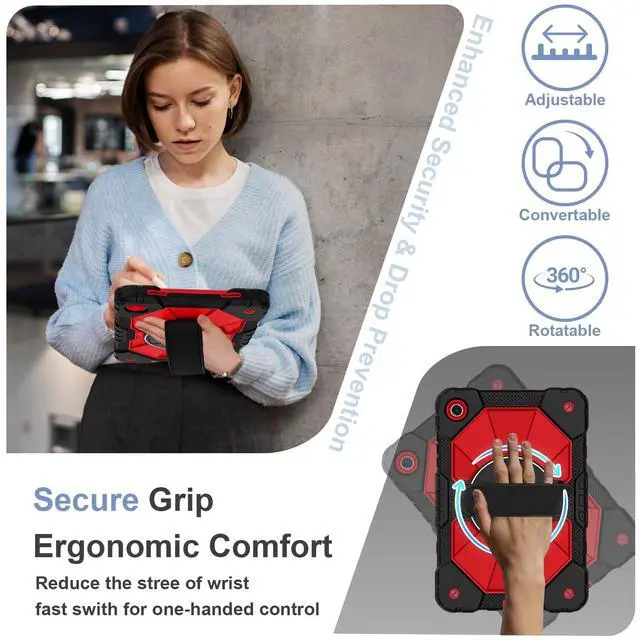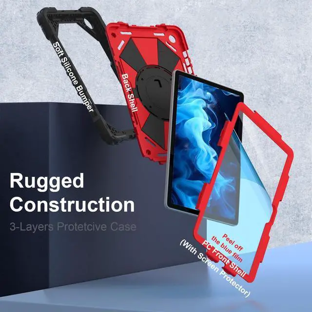 The 360 rotatable hand strap provides a firm grip for extended use, allowing you to switch between portrait and landscape orientations instantlywithout straining your wrist. Engineered for teachers, technicians, and workers who require mobility, on-the-go data entry, managing digital resources, or presenting materials while walking ^^ Heavy-Duty DefenseEngineered for max durability, this Galaxy A11+/A9+ case features a robust 3-layer defense system. A rigid inner shell maintains structural integrity, while a shock-absorbent silicone bumper disperses vibrations from impacts and falls. Effectively guards your A11+ tablet against accidental slips, drops, and daily wear.