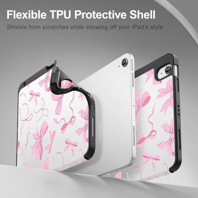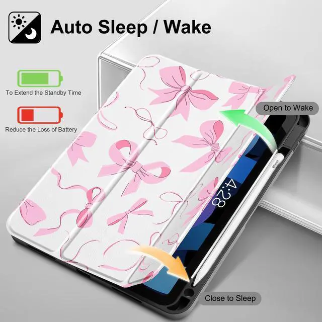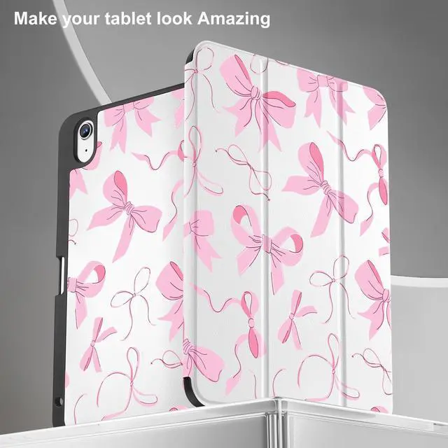 May Chen Case for iPad Air 11-inch M4/M3/M2 (2026/2025/2024) 8th 7th 6th, iPad Air 10.9 inch 5th/4th Gen, 2022 2020 with Pencel Hodel, Trifold Stand Auto Wake/Sleep Stand Cover, Pink Bows