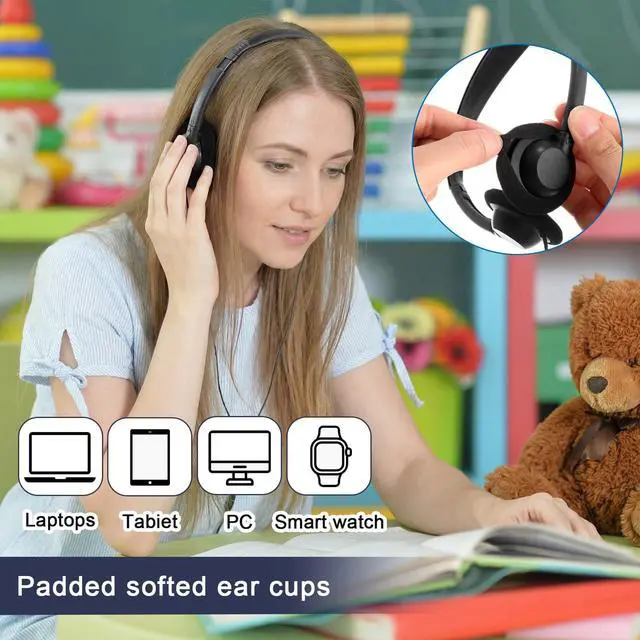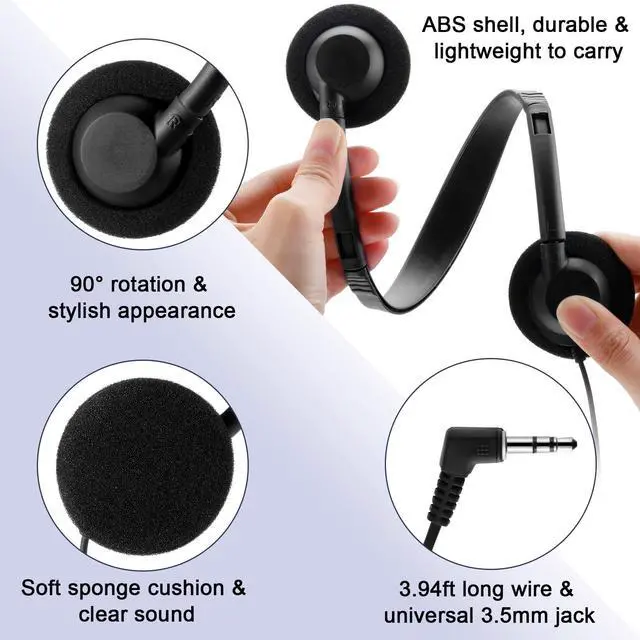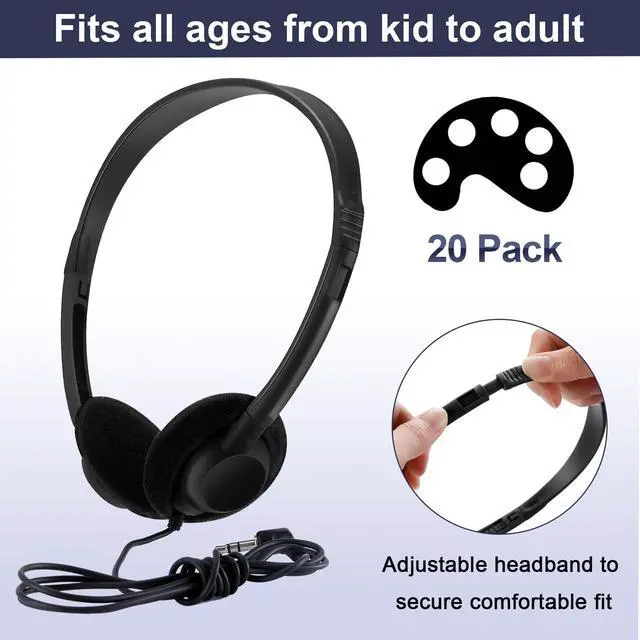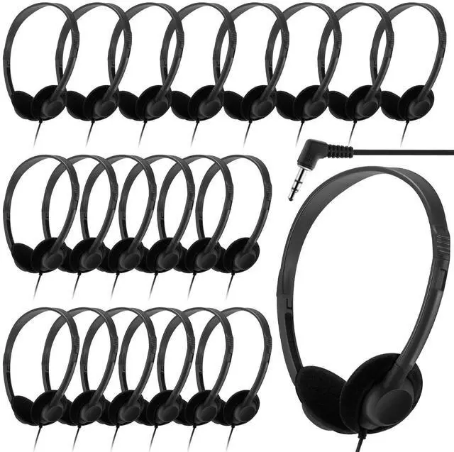 Features: This bulk set of over-ear headphones is designed for shared learning spaces, computer labs, libraries, and training environments where reliable audio and easy management are essential. It delivers clear sound performance for digital lessons, reading activities, language practice, multimedia projects and testing scenarios. Each headset is individually wrapped in an OPP bag, allowing for cleaning distribution and efficient storage throughout long-term use. The adjustable headband and soft ear pads ensure a comfortable listening experience during extended sessions, whether for device-based tasks, guided programs or assessments. Featuring a durable ABS outer shell and a flexible PVC cable approximately 1.2 meters ( 3.94 ft) long, these headphones are built to withstand frequent handling in busy environments. The standard 3.5 mm plug offers broad compatibility with laptops, desktops, tablets and other commonly used audio devices. Reliable, easy to manage, and suitable for large-scale use, this bulk headphone set is an excellent choice for libraries, computer labs, training centers, and shared learning programs requiring consistent audio support.