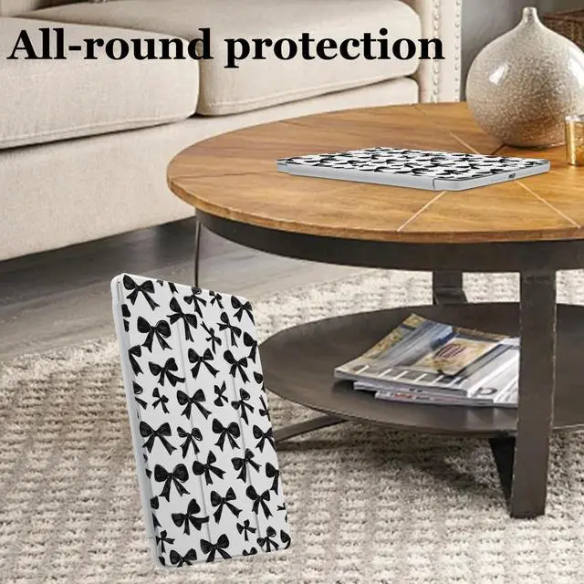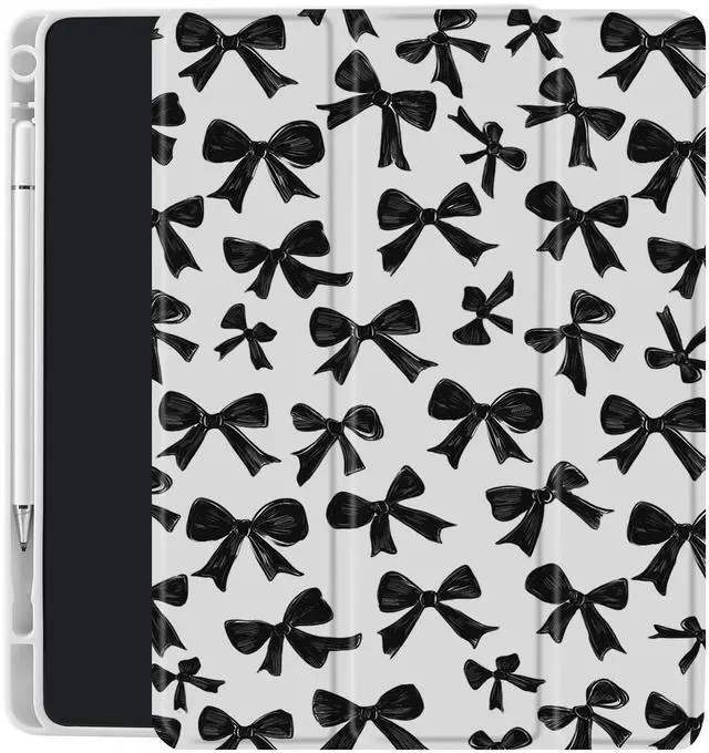 Model: A2696, A2757, A2777). ^^ Full Body ProtectionThis cute kawaii girly case for ipad is made of comfortable soft silicone &Transparent anti drop acrylic back shell. The back of this black white ribbon bow case for ipad provides full body protection and is more durable than traditional silicone materials. Our stylish print Case is less prone to yellowing, prevents scratches, and maximizes the protection of your pad from damage and scratches ^^ Auto Sleep / WakeThis stylish print Shell Support auto Sleep/Wake feature. Built-in magnetic strip, automatically wakes or puts your tablet to sleep when the lid is opened and closed. Protects and extends battery life. The cute kawaii girly Cover with pencil holder, Easily hold your pencil and charge it.