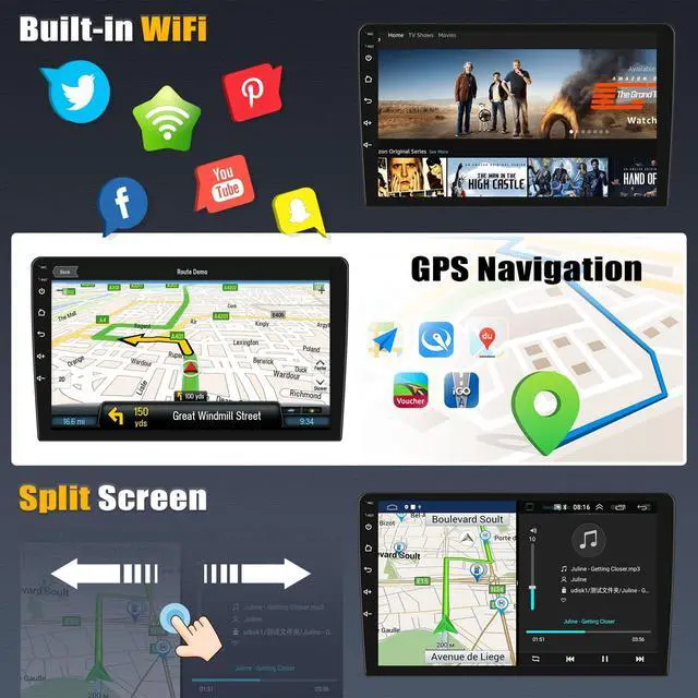 Build in FM, automotive level chipset provides the best radio signal reception performance, lets enjoy the best FM station and and drive with the rhythm of the city ^^ Steering Wheel Control &AHD Rear View CameraThe car radio supports the car steering wheel to remote control the radio panel, including switching songs, switching channels, adjusting volume, answering calls, etc., you can easily complete the operation while driving. Equipped with an AHD rear view camera with a waterproof design, Excellent night vision and 170 ultra-wide field of view. When reversing, the AHD camera reversing image will be automatically displayed on the touch screen