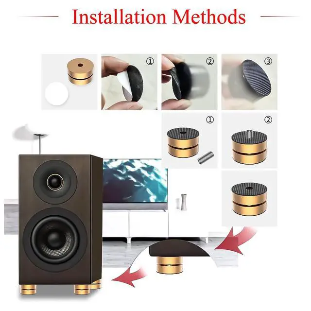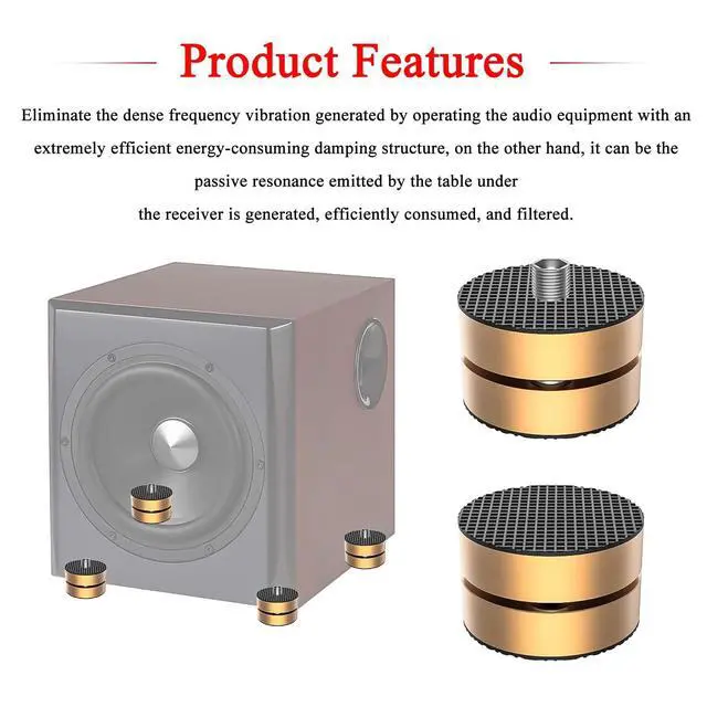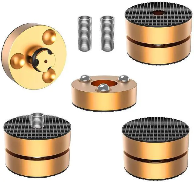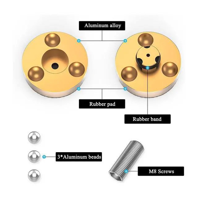 [Enhanced Sound Quality] Effectively improves sonic dynamics, resulting in a wider, deeper soundstage and more vividly reproduced details. ^^ [Sandwich Vibration Damping Structure] Features a sandwich-type structure where the top layer bears the equipment's weight, and the bottom layer channels vibrations downward through stainless steel balls for multi-directional dispersion. ^^ [Steel Ball Guide Cone Technology] Vibrations are radially diffused through the stainless steel balls to the lower layer, more effectively transmitting vibrations and reducing self-interference compared to conventional cones. ^^ [Precision Engineering & High Load Capacity] Manufactured with high-quality CNC machining and an anodized surface finish.