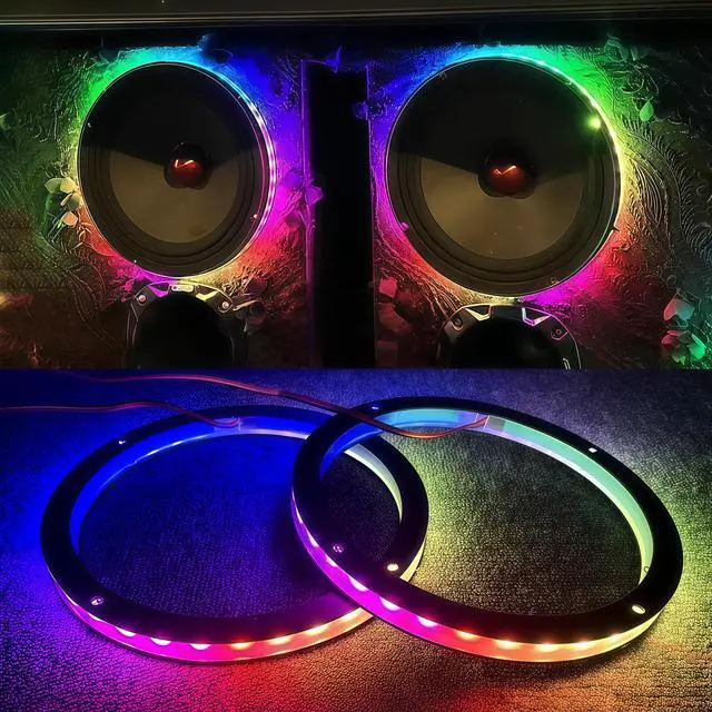 Speaker Rings: Light Up Your AudioUpgrade your audio setup with our 10 - inch LED speaker rings, marrying function and style. Tailored for 12 - Inch SpeakersDesigned specifically for 12 - inch universal speakers, these pre - drilled rings simplify installation. Just compare your speaker's diameters to ours for a quick, seamless fit. Durable, High - Quality BuildLEDs are encased in tough acrylic glass for protection and a modern look. A soft foam surround ensures a watertight seal, ideal for humid or vibrating environments. Waterproof for All UsesFully waterproof, these rings are perfect for boat, car, or powersports speakers. Enjoy illumination without worrying about water damage. Precision - Sized for Secure MountingWith exact DIMENSIONS -
