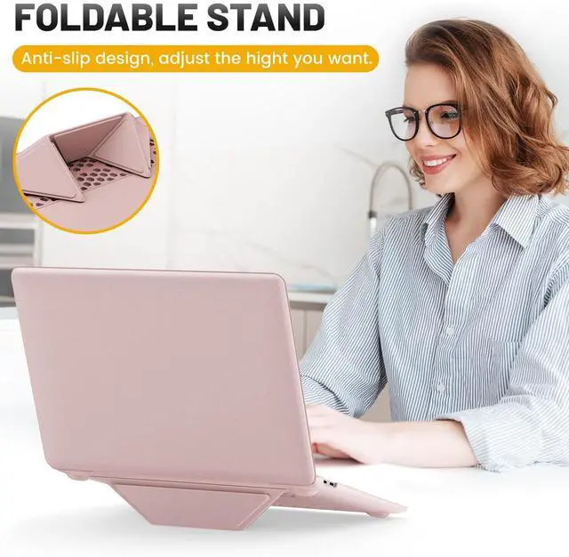 ^^ Foldable Kickstand: Designed with foldable stand, which gives a height adjustment to prop the laptop up, offering more friendly typing and viewing angles. The vents on the bottom can also help the heat dissipation, comfortable for daily use, the built-in stand can be folded up when not in use. ^^ Easy to Install and