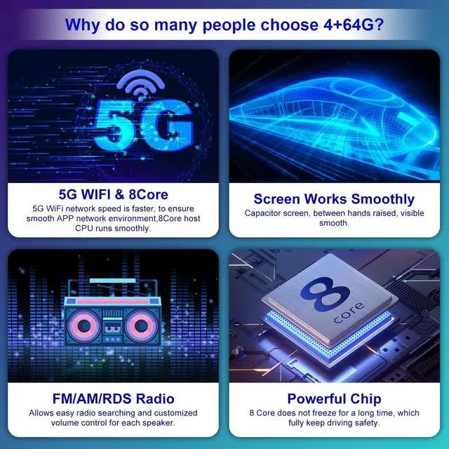 ^^ Wireless Carplay & Wireless Android AutoEnjoy wireless CarPlay and wired/wireless Android Auto with Bluetooth 5.0 for quick and easy connection. Just talk to Siri/Hey Google or touch the display to get directions from your phone's map, make calls, listen to voicemails, send and receive text messages, and listen to your favorite music, all while keeping your focus on the road. ^^ Smarter DrivingThe addition of RDS, SWC, and GPS functionality further elevates the capabilities of the car stereo system. RDS enables you to receive real-time traffic updates, news, and other information from compatible radio stations.