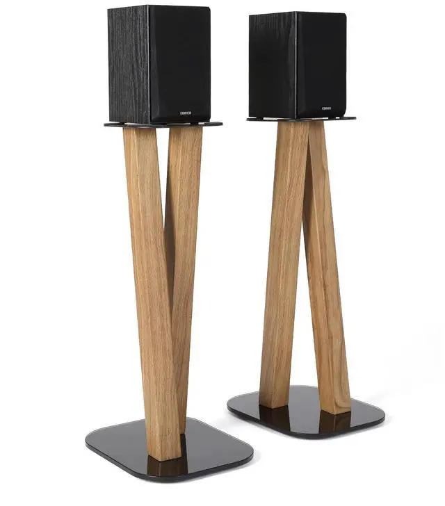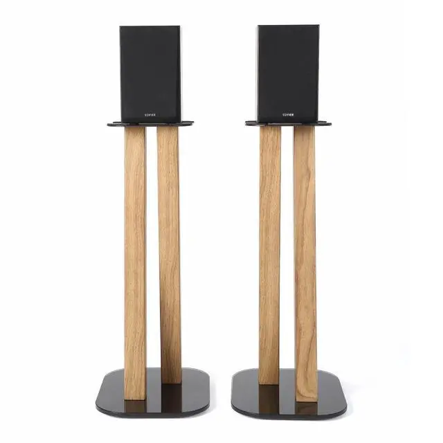 EXIMUS One Pair Fixed Height Universal Speaker Floor Stands - Oak - 600 Series