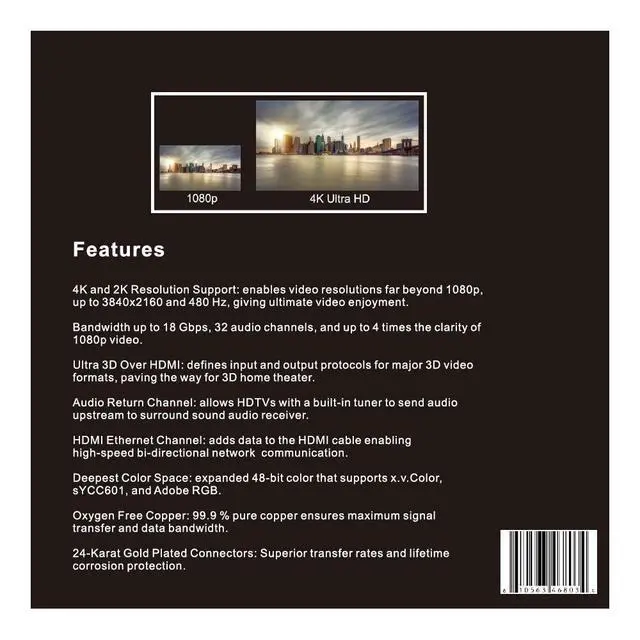 It supports high refresh rates and advanced gaming features like VRR (Variable Refresh Rate), essential for an immersive, cutting-edge gaming experience that matches the power of your gaming rig ^^ HDMI CABLE CONNECTS Latest OLED, QLED, LCD-LED, Mini-LED Televisions, Projectors, Monitors, Apple TV, PS5, Xbox Series X, Roku, Nvidia Shield, Fire TV, Nintendo Switch ^^ OPTIMIZED FOR USE WITH SOUNDBARS ensuring seamless audio transmission and enhanced sound quality. Its advanced design and build cater specifically to the audio requirements of high-end sound bars. Supporting 3D sound with Dolby Atmos, DTS: X Content, TrueHD 7.1, Apple AirPlay 2 & Audio Return Channel (ARC) & Ethernet ^^ MALE TO MALE HDMI Cable Supports 4K (3840 x 2160 pixels) Up to 60 Hz refresh rate. 1080p (1920 x 1080 pixels) Up to 240 Hz refresh rate. 1440p (2560 x 1440 pixels) Up to 144 Hz supported. 3D Video Support at various resolutions ^^ UNCONDITIONAL LIFETIME WARRANTY Heavy duty and fully shielded guaranteed for life