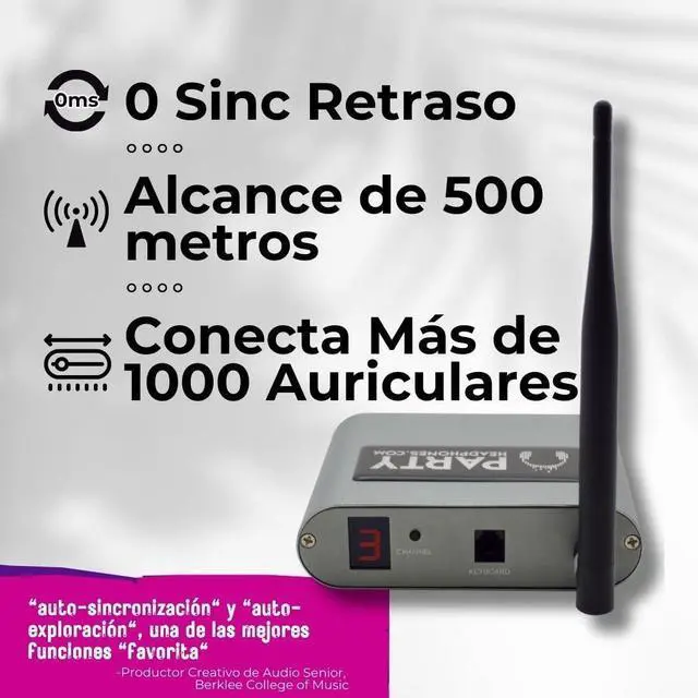 [1500ft Range & No Lip-Sync Delay] Enjoy seamless, high-quality audio across a powerful 1500-foot range with zero lag, ensuring perfect synchronization between sound and visualsfeatured on platforms like Netflix, Prime Video, Apple TV, and FXX. ^^ [Supports Up to 100 Headphones] Broadcast to up to 100 RF wireless headphones simultaneously, making it ideal for group listening, college parties, and silent disco events. ^^ [3 Channels with Easy Toggle] Offer multiple audio options by toggling between three channels, allowing your audience to switch between different streams effortlessly. ^^ [Durable & Portable Design] Encased in robust steel housing, this transmitter is built to withstand travel and frequent use.