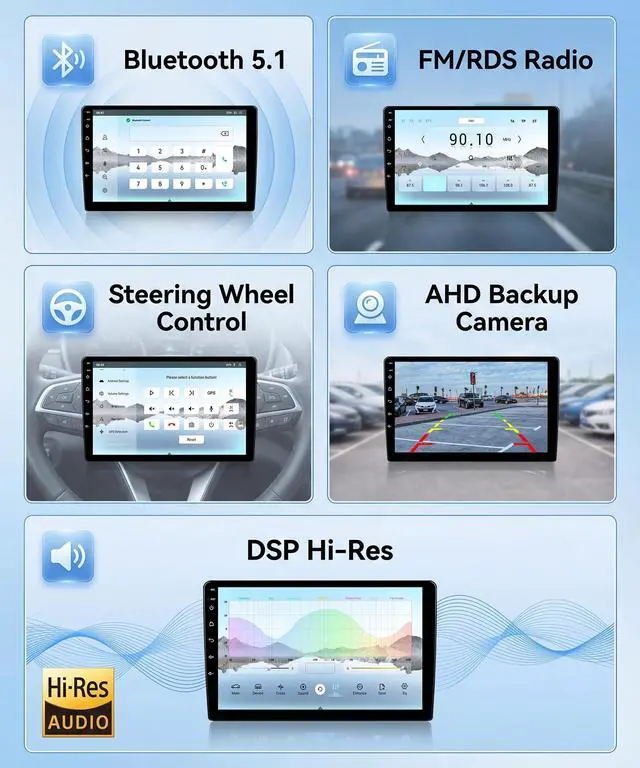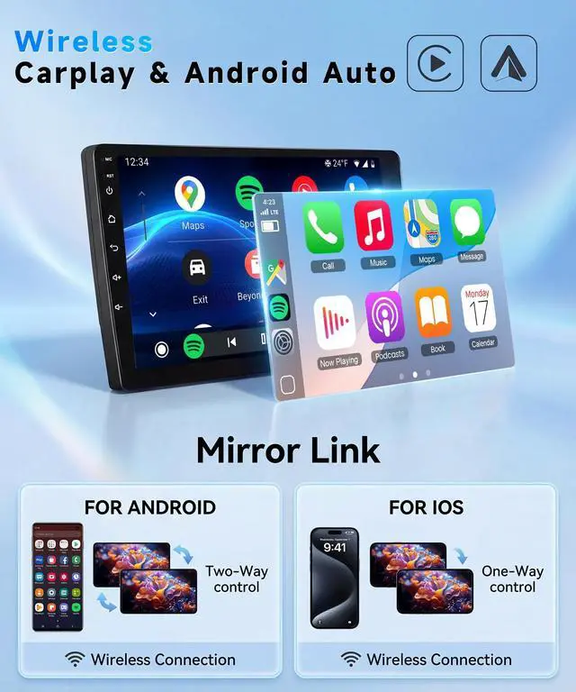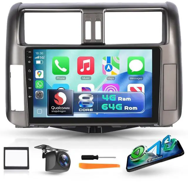 ^^ Wireless CarPlay & Android Auto (Hands-Free)-- This car radio supports Wireless CarPlay and Android Auto, enabling hands-free calls, voice-controlled messages, navigation, and music playbackcompliant with US distracted driving laws. No more fumbling with your phone; enjoy Toyota Land Cruiser carplay convenience and stay focused on the road while accessing your favorite mobile apps directly on the Toyota Land Cruiser stereo screen. ^^ FM/RDS Radio & Multifunctional Connectivity-- Built-in FM/RDS radio for your car radio provides clear reception of local US stations, delivering real-time traffic updates, news, and music.