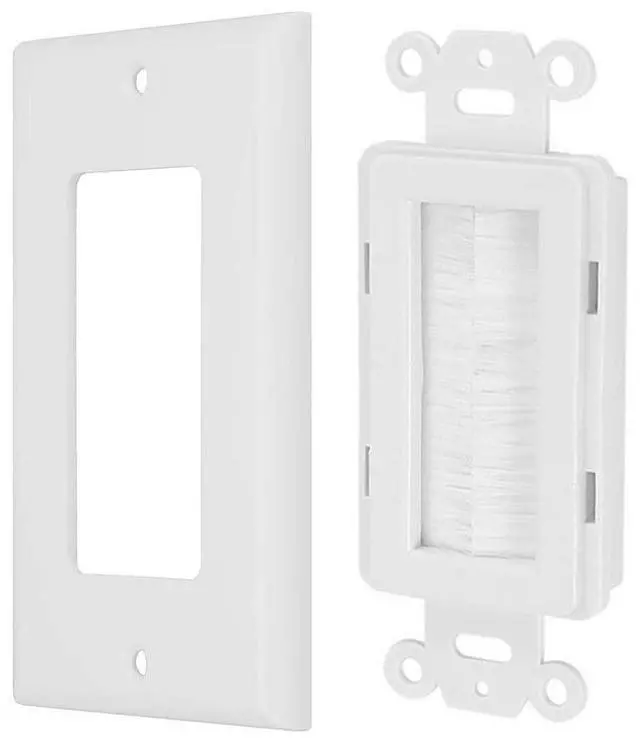 Cable passthrough Wall Plate is a single gang filler-plate that can be used to cover up and let cable pass through on your wall boxes. Universal Brush Style Low Voltage Cable Wall Plate is designed specifically for the installation of low-voltage cables and wires in walls.