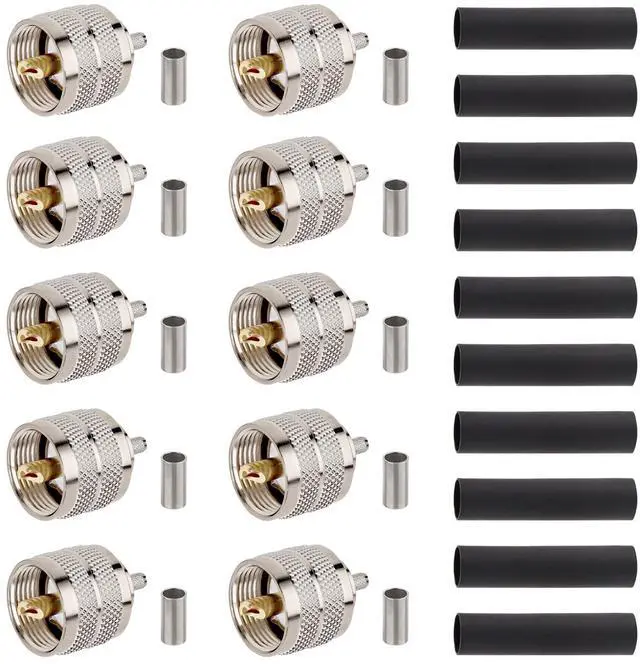 Type: UHF male crimp connector, PL259 crimp connector 10 packs, suitable for connecting with UHF female connector.