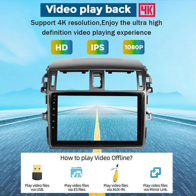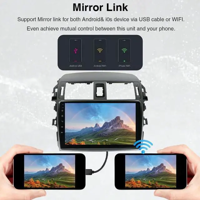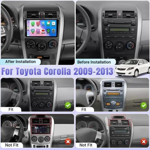 Vehicle CompatibilityOur Android car radio stereo is tailored to fit seamlessly into for Toyota Corolla 2009-2013. Unsure if its compatible? Please check the year, dimensions, and shape of the center console of your vehicles before purchasing, we will ready to assist you within 24 hours. No modifications neededinstallation is a breeze! ^^ Compatible with Wireless carplay & Android Auto2013 Toyota Corolla car stereo radio supports with carplay/Android Auto connect via Bluetooth, project the contents of your phone to the large screen of the host, and you can share your favorite 1080P videos, high-definition pictures, etc.