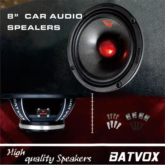 Upgrade your car or truck's audio system with these premium-quality 8" midrange door speakers. Designed for both performance and style, these speakers deliver unmatched power, clarity, and sound quality, transforming your vehicle into a high-performance audio haven. With their versatile compatibility and efficient power transfer, they're the perfect choice for music lovers seeking an immersive listening experience on every journey.