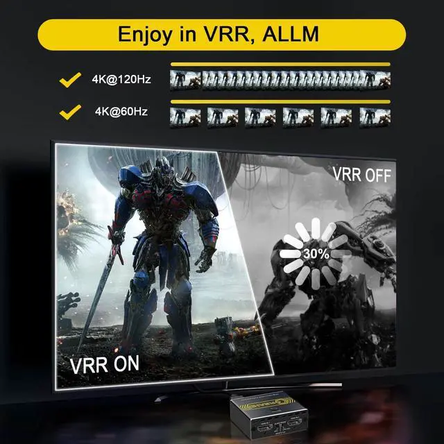 Especially supports speakers and headphones. ^^ Please Note -- 1. Highly recommend certified HDMI 2.1 cable less than 10ft / 3m. 2. Most using issues are cuased by poor quality cables. 3. Supports only 2 in 1 out, does NOT support 1 in 2 out or Bi-directional. 4. Does NOT support automatic switch. 5. Does NOT support Sonos-ARC/e-ARC.