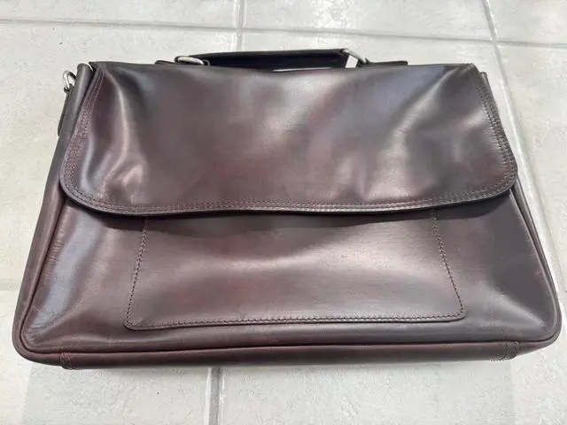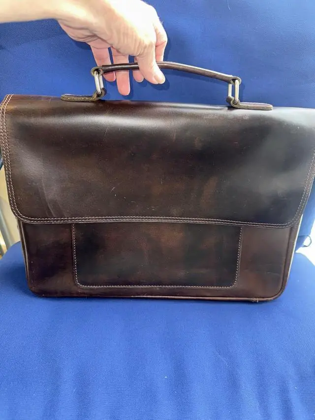 DescriptionElevate your professional style with this sophisticated full-grain leather briefcase. Masterfully handcrafted to blend timeless design with modern functionality, this laptop bag comfortably accommodates up to a 15.6 -inch laptop while offering multiple compartments for efficient organization of your daily essentials. The premium brass hardware adds a touch of elegance and ensures lasting durability. The briefcase's thoughtful design features ample storage space for documents, electronics, and business accessories, making it perfect for the modern professional. Whether heading to important meetings or daily office commutes, this leather briefcase makes a lasting impression while keeping your belongings secure and organized.
