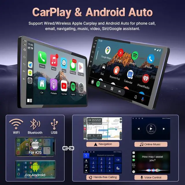 No need to purchase additional accessories ^^ In-dash GPS Navigation & 5G WiFi Connection The upgraded radio for 2010 Toyota Sequoia built in GPS module and 5G WiFi, support both online and offline navigation app from Google Play APP market, you will not get lost again during driving with the updated data from the navigation app. This android radio for 2013 Toyota Tundra allow install or delete android apps from Application Store, as the same as smart phone ^^ Built-in Bluetooth & FM RadioUpgraded car play screen for 2011 Toyota Tundra supports Bluetooth hands-free calling and music playback. It includes a microphone and supports both built-in and external microphones, ensuring crystal clear communication. Additionally, Stable FM radio with unlimited preset stations, transmit music to your car stereo through FM and enjoy your favorite radio stations; For 2016 Toyota Sequoia car stereo carplay support manual and automatic station search ^^ Steering Wheel Control & AHD Rear CameraThe double din radio for 2013 Toyota Tundra no need to modify car power cables with the plug and play wiring harness, supports original steering wheel control. For this 2017 Toyota Sequoia radio package comes with an extra AHD back camera, 170-degree ultra-wide angle, waterproof design, help clearly observe the rear environment and drive safer