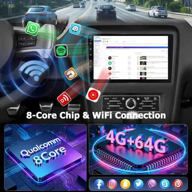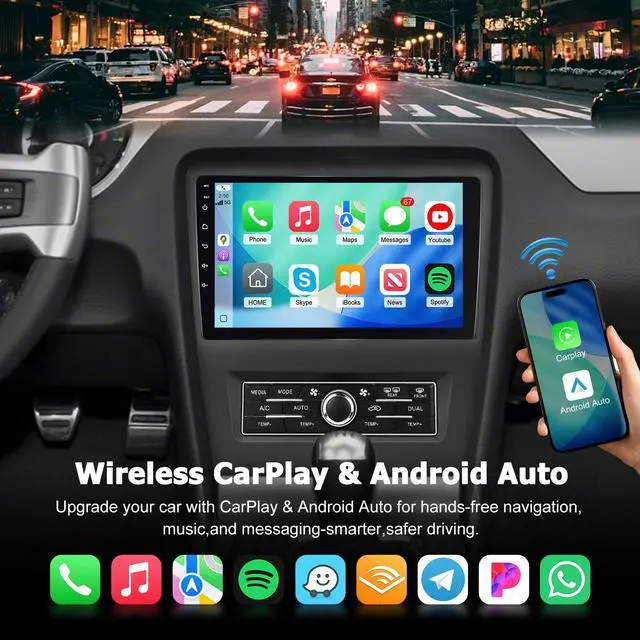 & Latest Android System]: Powered by the latest Android system and an 8-core CPU, this Ford Mustang car radio comes with 4GB RAM and 64GB ROM, ensuring smooth operation and ample space for app storage; Upgraded configuration provides you with a better user experience ^^ [Wireless CarPlay & Android Auto &