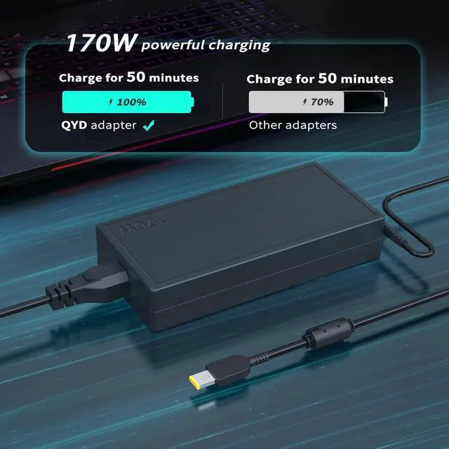 Connector: Slim Tip. QYD 170W Laptop Charger has been tested and is