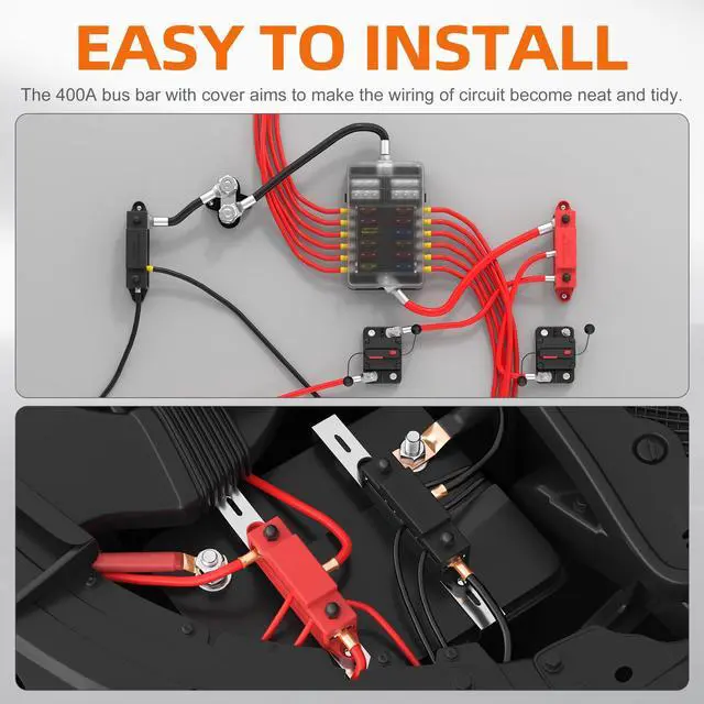 Wide Application: The 400 amp marine bus bar with cover aims to make the wiring of circuit become neat and tidy, preventing mess harness from causing electric short circuit, it is suitable for automotive, car, truck, marine, boat, solar wiring