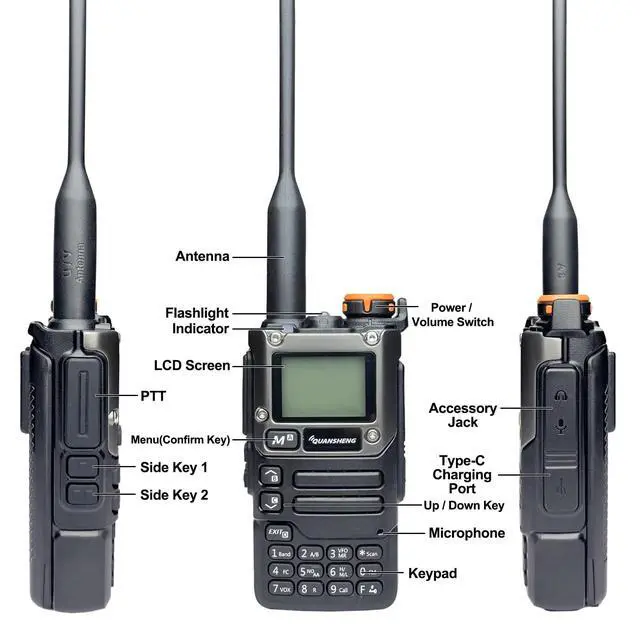 Quansheng UV-K6 Radio FCC ID: XBPUV-K5, UHF/VHF Dual Band Two Way Radio, AM reception, FM radio, one-button frequency matching, NOAA weather forecast, boot password protection and other 48 function settings. ^^ 2-Charging Methods Optional Equipped with a 1600mAh Type-C Charger Battery and Desktop Charger. 5WCTCSS/DCS; VOX Mode for Hands-FreeDTMF and 1750 tone. ^^ Survival Gear and SuppliesThe Radio is necessary for traveling, survival, hiking, cycling, work, camping, fishing, Emergency Alarm. It is Walkie talkie lover's favorite, a Survival Gear and Supplies gifts. ^^ One-Click Frequency ScanningAllowing you to easily copy the frequency of other radio and avoid tedious frequency programming steps. It also Support CHIRP and