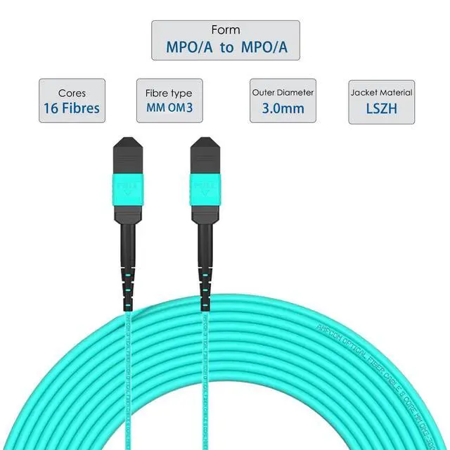 High Speed Type B 50/125m Multimode LSZH OM3 MPO 16 Fibres to MPO 16 Fibres Fibre Optic Patch Cable Providing a Secure and Reliable Connection for 40G/100G/200G/400G/800G/1.6T Optical Transceiver Module