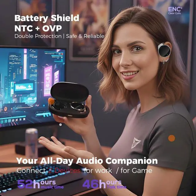 ^^ Call Clarity: These headphones support simultaneous dual-device connectivity (phone + laptop) and 4-mic ENC technology with AI wind noise reduction for crystal-clear calls in 60dB windy environments or crowded streets.