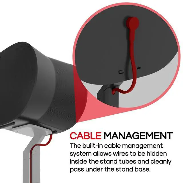 CABLE MANAGEMENT: Our Sonos ERA300 floor stand combines style and function in a compact form that fits anywhere. With an integrated cable management system, it neatly hides wires, ensuring a clean setup that complements your home decor.