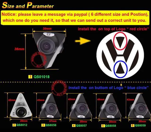 Dear customer, Please must check the camera size and appearance before place a order, see if can fit your license light place size and appearance! Because the same car model in different countries may have some difference, please check the camera size and compare the installation of your car carefully to avoid mistake.