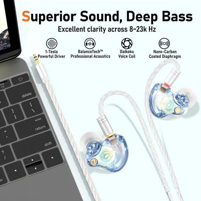 FOR MUSICIANS & AUDIOPHILES Vibes 202 wired earbuds deliver high-fidelity sound for musicianssingers, drummers, or guitaristswho need precise monitoring, and for audiophiles craving natural, detailed HiFi sound. Enjoy studio-grade audio with powerful bass, rich mids, and crisp highs, delivering spatial, latency-free clarity, immersing you in a live concert feel. ^^ EXCEPTIONAL HIFI SOUND - Equipped with a 1-Tesla powerful driver and master-tuned professional acoustic chambers, the Vibes 202 HiFi in-ear monitor earphones deliver precise and detailed sound across a full frequency range from 8 to 23k Hz.