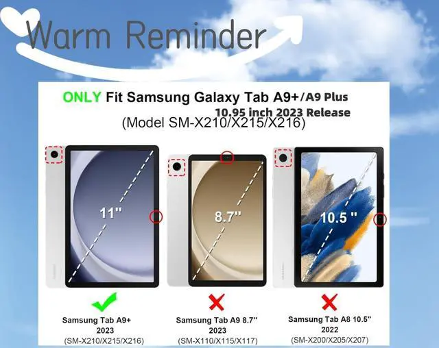 this case is protect and perfectly fit your Samsung Galaxy Tab A9 Plus/A9+ 5G 11 Inch 2023 Model (SM-X210/X215/X216/X218) tablet. Please do confirm your tablet model number before purchasing.