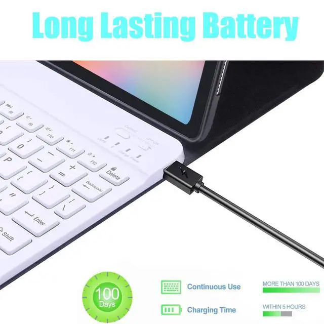 [Auto Sleep/Wake] - The keyboard case with magnetic closure automatically wakes up your tablet when opening the cover and puts it to sleep when closing it. No need to manually turn on or off the keyboard anymore. It brings you much mo