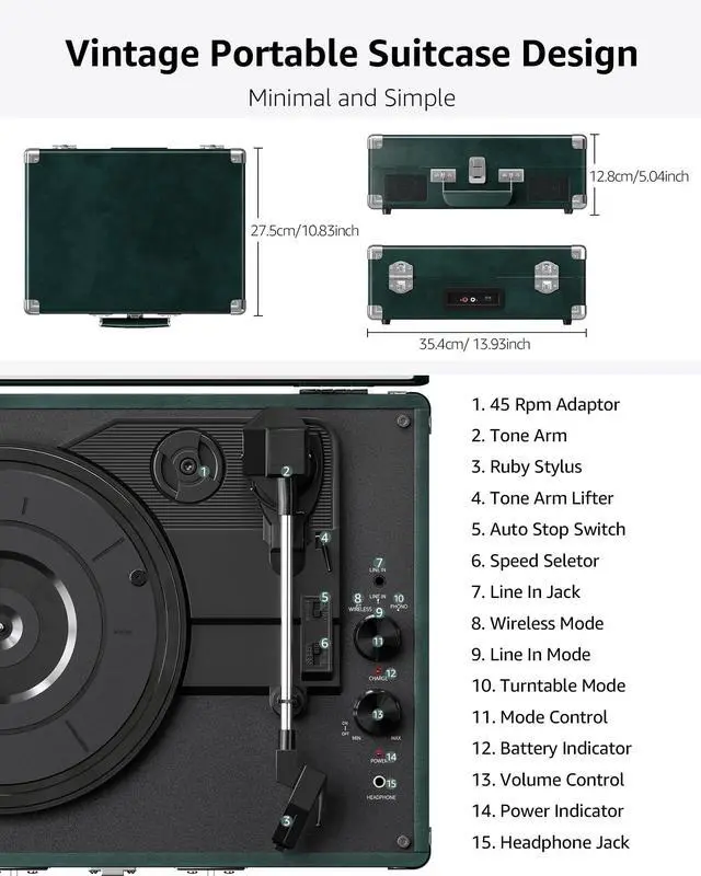 Use: The built-in 2000mAh battery delivers over 6 hours of continuous playtime, with USB-C charging that supports power bank compatibility take your music anywhere without cable restrictions. Ideal for beginners, kids record player enthusiasts, or music lovers ^^