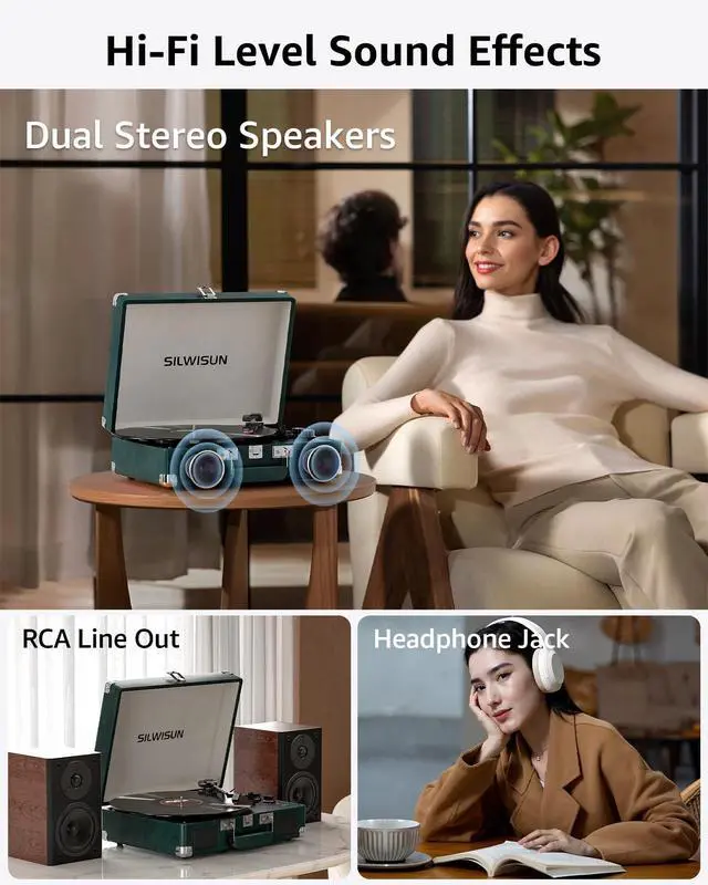 Premium Tuned Sound: Premium-tuned through iterative audio enhancements, this vinyl record player delivers clear, rich stereo audio with low noise for a truly satisfying listening experience ^^ Rechargeable & Easy to