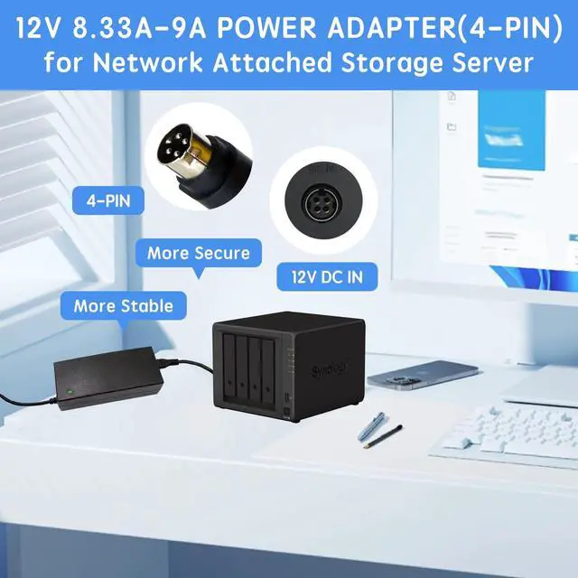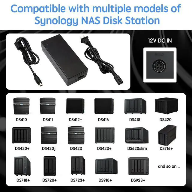 Compatible with Synology DiskStation ST-C-120-12000833CT STC-120-12000833CT MBA50208 PN: EA11001E-120 MicroBattery, DS916+ DS916 Network Attached Storage NAS Server; PGB EA11011D-120 EA11001E-120 for Synology DiskStation Network Attached Storage NAS Disk Station 12VDC Server, DS918+ DS918 4 bay ^^ Compatible with Synology DS409 DS409+ DS409+R1 DS415 DS415+ DS415play DS408 DiskStation NAS Server Network Storage, EA1100E-120 EA1100E120, for Synology Diskstation DS416 DS416j Ds416play DS416SLIM DS418 DS418j 4-Bay NAS Server Diskless Network Attached Storage CWT 2AAL090F PartnerTech SP-1000 Series ^^ Compatible with QNAP SP-4BAY-ADAPTOR NAS TS-410 TS-412 TS-409 TS-419 TS-420 TS-421 TS-439 TS-459 TS-469 IS-400 Pro Turbo TS-419P+ TS-439U TS-459U TS-469U Server, QNAP TS-653D TS-653D-4G TS-653D-8G TS-653X TS-653B-4G TS-653B-8G TS-932X TS-932X-2G TS-932X-8G NAS Enclosure PWR-ADAPTER-120W-A01 QNAP NAS Server Power Supply Cord Adaptor ^^ Compatible with Synology DiskStation DS723+ DS720+ DS718+ DS718 DS715 DS716 DS716+ DS716+II Disk Station 2-Bay Desktop NAS Server, for Synology DiskStation DS710 DS712 DS710+ DS712+ DS 710 DS 712 Disk Station Network Attached Storage Server ^^ Compatible with Synology DiskStation DS413 DS413j DS414 DS414J DS411 + II DS411+II DS411II, DS713+ Robust & Scalable 2-bay, Cube Station CS407 4-Bay SATA Gigabit NAS Server Disk Station Network Storage NAS 100W - 120W 4 Prong Connector ^^ Compatible with Synology NAS DiskStation DS1522+ DS1520+ DS1019+ (Diskless) 5-Bay, for Synology DS1522+ DS420+ DS423+ DS918+ DS920+ DS923+ DS620slim DS420j DS720+ DS418 DS718+ NAS Server, for Synology Disk Station DS408, DS409, DS409+, DS409+R1, DS410, DS410j, DS411, DS411J, DS411+, DS411+II, DS411j, DS412, DS412+, DS413, DS413j, DS414, DS414j, DS415, DS415+, DS416, DS418, Server DiskStation Network Storage NAS Server Mains PSU(with 4-Prong Connector) ^^