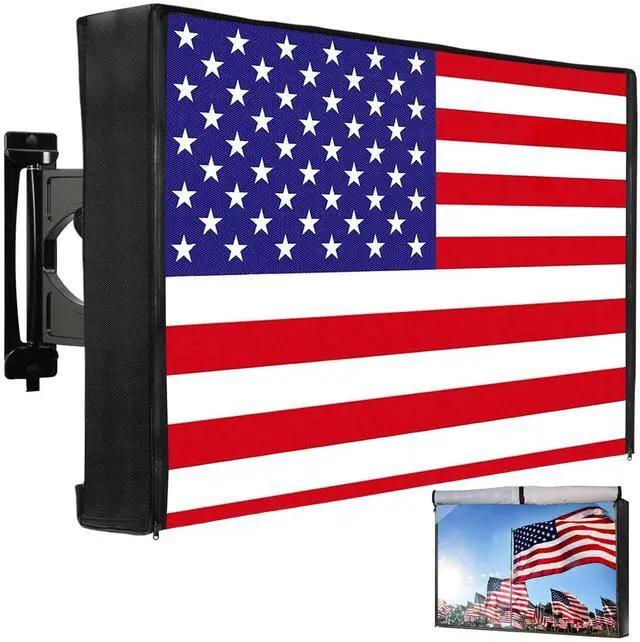 For Most 50" TVs- 46.5 ''L x 27.5 ''H x 4.5"W, DIAGONAL LENGTH=SIZE OF TV=50". Please measure the external dimensions of your TV including frame before purchasing to ensure compatibility. Make sure all parts are fully covered to provide the best protection. Fits most brands of LCD LED flat screen TVs. ^^ 600D Premium OxfordThe outdoor TV cover is made of durable 600D Oxford cloth without easy fraying or tearing. It can effectively protect the TV from water and surface scratches. The American flag pattern allows you to proudly display your patriotic sentiment and become a highlight in your home.