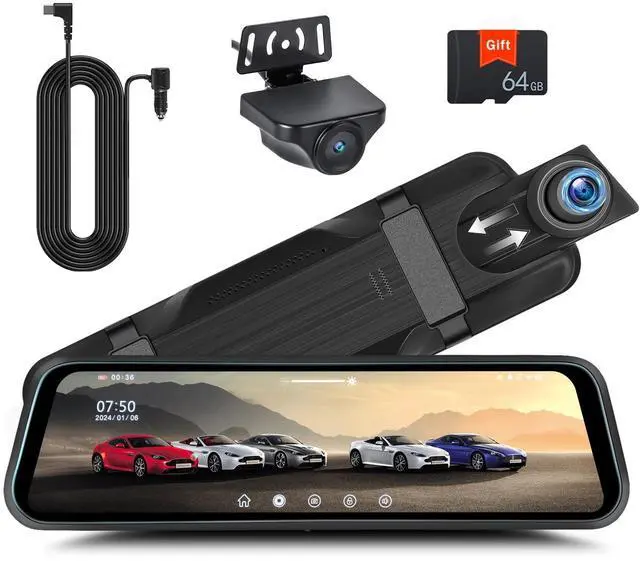 Card Included: 9.66 inch rearview mirror dash camera features HD 1920*1080P front and rear recording. With WDR technology and exposure compensation technology, the rear view dash cam offers clear footage, support