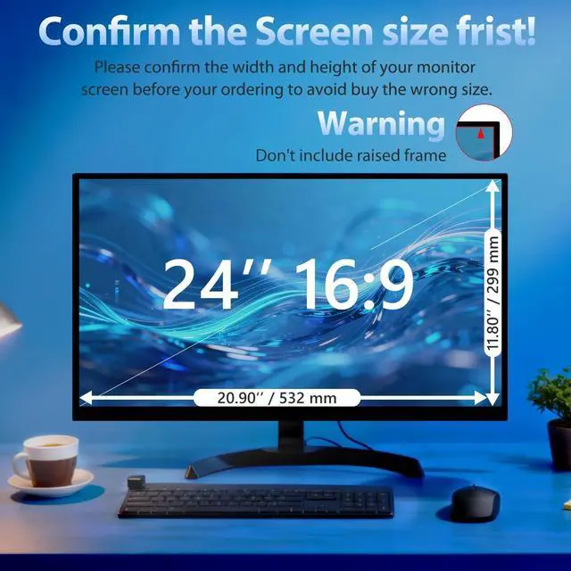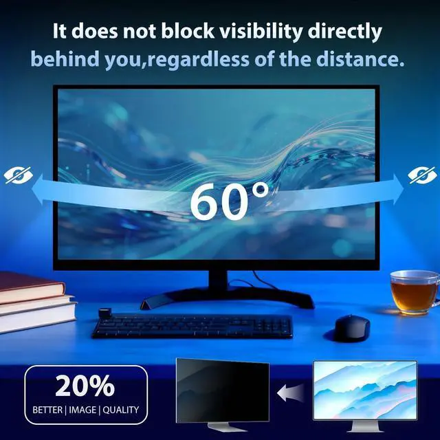 Improved Privacy FilterAOLWEEC 24 inch privacy screen filter after 300 times updates, Use revolutionary micro-louver technology. The 24 inch computer privacy filter limits viewing angle to +/- 30 and provide clear vision on the front. If see from the sides, the greater the angle the darker the screen. Anyone who tries to peek over the side will only see a dark screen! So with a computer privacy screen protector 24 inch, the privacy of your computer screen will never be leaked. ^^ ENHANCED EYES PROTECTIONLong term exposure to computers for work or entertainment often leads to eye fatigue and dryness.