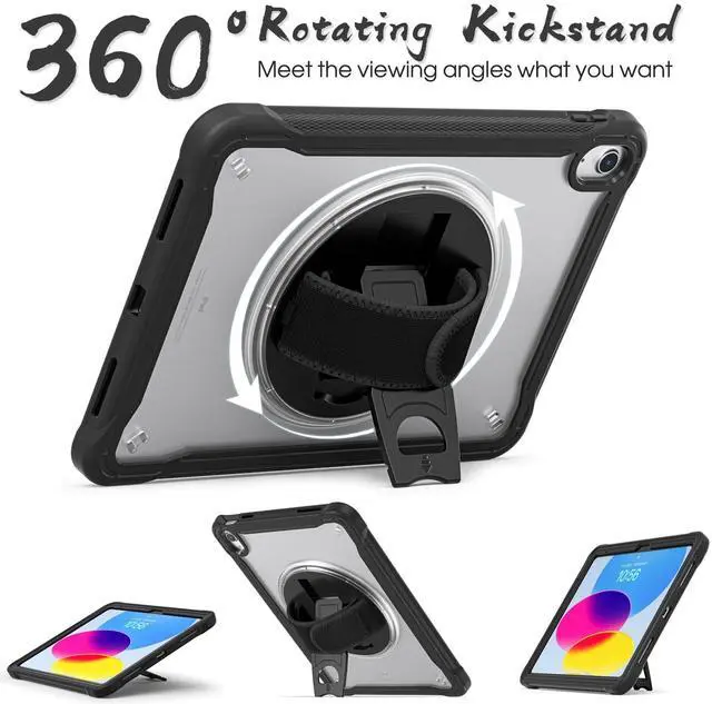 NOTICE: Apple pencil is NOT included ^^ 360 Rotating Hand Strap / Stand This iPad case features 360 rotatable collapsible kickstand and horizontal angles (30, 45, 60) that allows you to position your iPad as you see fit, suitable for drawing, studying, working or watching a movie. The With soft handle strap is easy to grip and ideal for students, teachers, doctors and waiters. ^^ Full Protection+Screen ProtectorThe product is made of PC+TPU, Multi-layered hard PC back and flexible TPU bumper provide for your iPad A16 against hits, drops, shocks and bumps. The built-in screen protector prevents scratches and damage to your iPad screen during regular use. ^^ Portable Shoulder StrapCome with a detachable & adjustable shoulder strap, let your hands-free, Hang it anywhere with ease while walking, hiking, driving, traveling, or enjoying outdoor recreation. ^^ Unmatched Customer Support BRAECNstock, we are devoted to providing our customers with excellent professional team and products. If you encounter any problems or concerns during use, such as size mismatch, installation guide, return or exchange, product damage, etc.