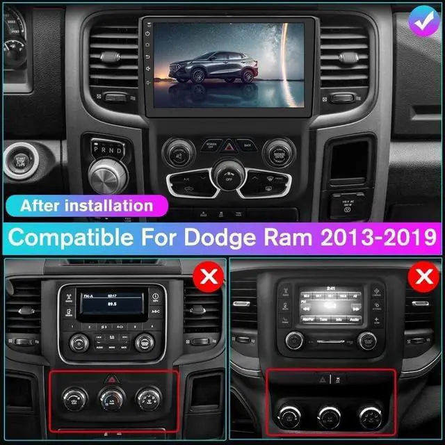 FitmentOur double din car stereo radio is specifically designed for Dodge Ram 1500 2500 3500 2013 2014 2015 2016 2017 2018 2019 Automatic AC with 9 inch touch screen radio, ensuring a fit and seamless integration with your vehicle. Please check the year, dimensions and shape of the center console of your vehicle before purchasing ^^ Android 13.0 System & Car Radio Multimedia PlayerOur bluetooth for 2015 Dodge Ram 1500 car radio with cd player has the latest Android 13.0 operating system 2GB (RAM) +32GB (ROM), powerful core processor, ensures smooth operation and faster response.