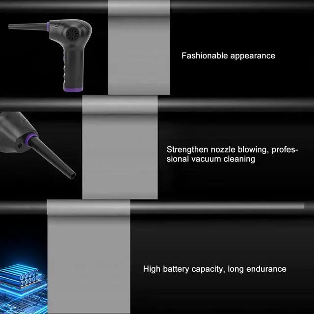 ^^ Long-Lasting Battery: The dust blower is designed with a powerful 6000mAh rechargeable battery, ensuring a continuous cleaning experience without the need to worry about running out of power. ^^ Wide Range of