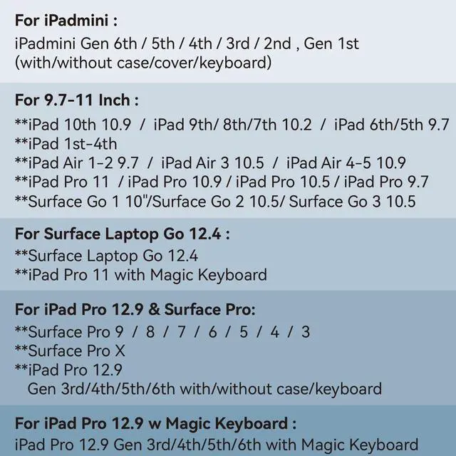 Perfect Size: Our laptop sleeve is compatible with iPad 10th 10.9, iPad 9th/ 8th/7th 10.2, iPad 6th/5th 9.7, iPad 1st-4th, iPad Air 1/2 9.7, iPad Air 3 10.5, iPad Air 4/5 10.9, iPad Pro 9.7, iPad Pro 10.5, iPad Pro 10.9, iPad Pro 11 (For the iPad 11 with Magic Keyboard, pls choose the next bigger size ) ^^