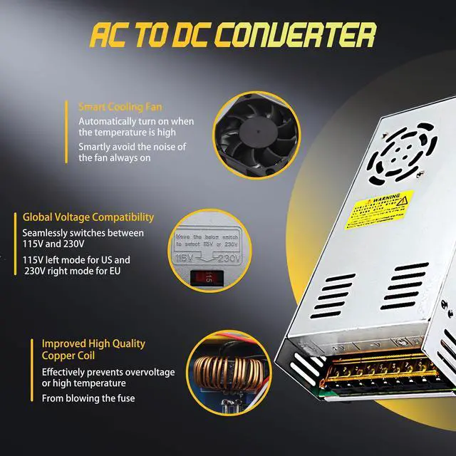 Match Power Appropriately: If the input voltage is 110V, it is recommended to select a switching power supply with 1.4 times the rated power. If the input voltage is 220V, it is suggested to choose one with 1.2 times the rated power. 3.
