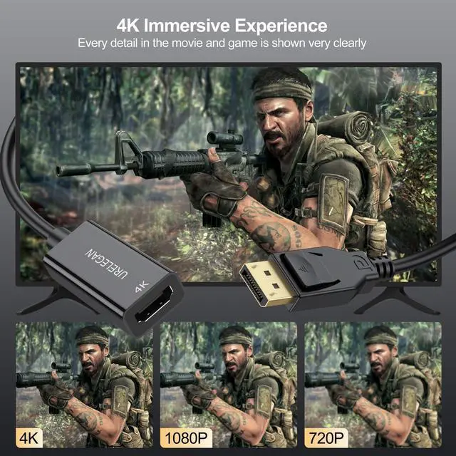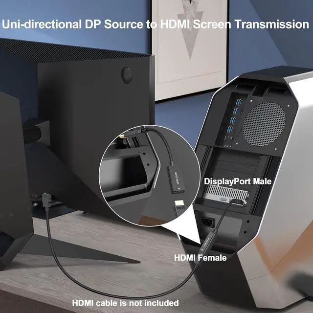 NOTE: It is a UNI-DIRECTIONAL CABLE, only converting FROM DisplayPort source to HDMI display. ) ^^ UNIVERSAL COMPATIBILITYPerfect for home & office, late-night gaming or movie session, you can trust this 4K DP to HDMI converter that is compatible with various laptops, desktop tower, GPU and other devices with a DisplayPort. Connect to TV, projector, monitor, VR headset, etc... ^^ SAFETY LATCH DESIGNDisplay Port to HDMI connector with latches provides a secure connection with a release button that must be depressed before unplugging. ^^ PLUG & PLAYEasy to use, no driver or software required! Protable HDMI to DisplayPort cable connects a DisplayPort (DP, DP++, DisplayPort++) equipped laptop or desktop to an HDTV. ^^ 24H SERVICE ONLINEOriginated from confidence in the DisplayPort to HDMI Adapter, ensures long-time satisfaction of your purchase, If any problem plase tell us through.