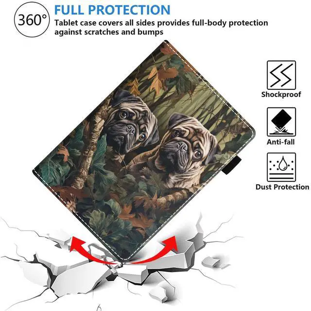 TBXOSTN Case for All-New Kindle Fire HD 10 & 10 Plus Tablet (13th/11th Generation, 2023/2021 Release) 10.1" - Premium PU Leather Stand Cover with Smart Auto Wake, Jungle Camouflage Pug