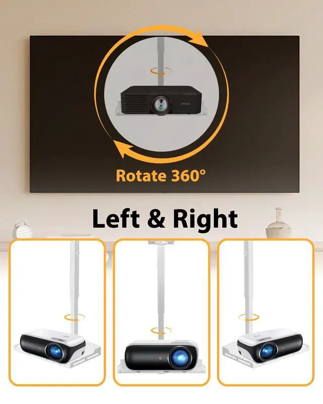 Installation: Comes with all necessary hardware and clear instructions for quick ceiling installation. The telescopic arm adjusts effortlessly, so you can set up and secure your projector in minutesno technical skills or extra tools needed. ^^ Durable Steel Build &