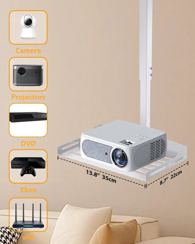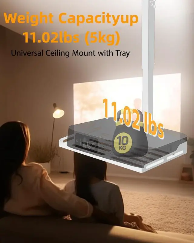 Weight Capacity: Supports most projectorsincluding models without mounting holesas well as cameras, laptops, and other AV equipment. The sturdy 13.8" x 8.7" metal tray safely holds up to 11 lbs, making it ideal for home theaters, offices, and studio setups. ^^ Adjustable Height for