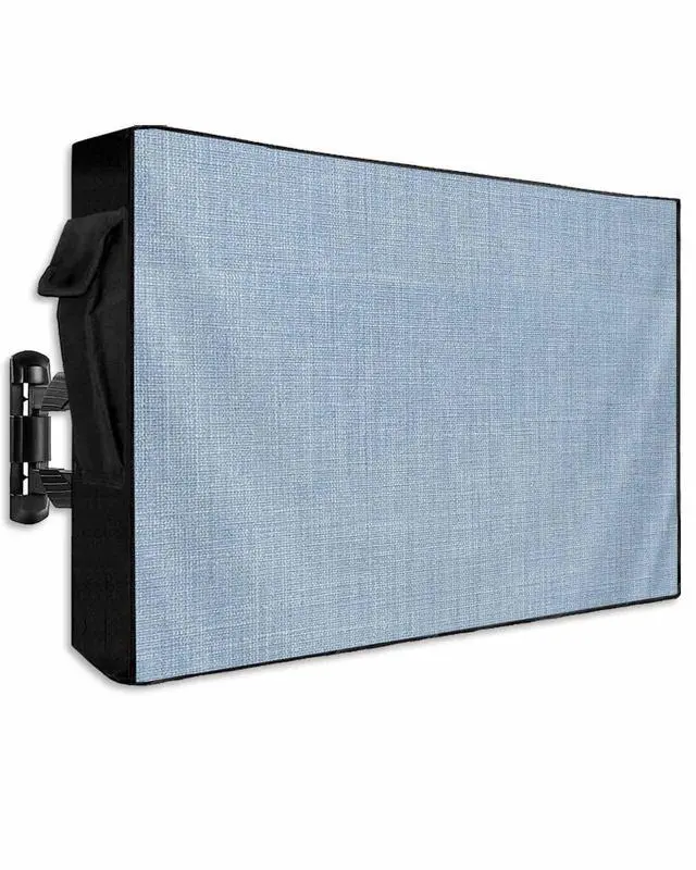Outdoor TV Cover 40 to 43 Inch Sky Blue Solid Color Weatherproof Waterproof TV Screen Protector with Zipper&Pocket Retro Linen Minimalist Style Outside Flat TVs Enclosure