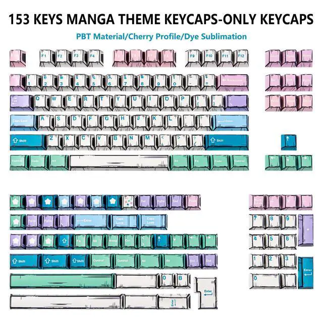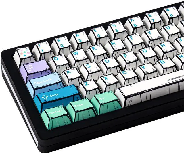 Comic Aesthetic: Bold black outlines and whimsical icons on a white background, the manga keycaps give your keyboard a dynamic, hand-drawn cartoon appearance ^^