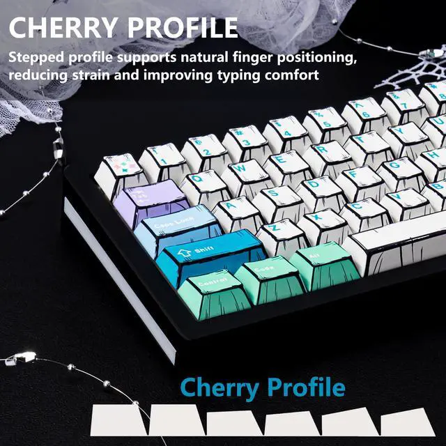Ergonomic Cherry Profile: Designed with a comfortable stepped profile that supports natural finger positioning, reducing strain and enhancing typing accuracy and comfort